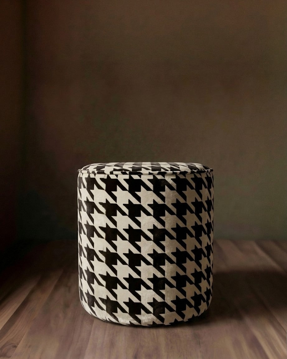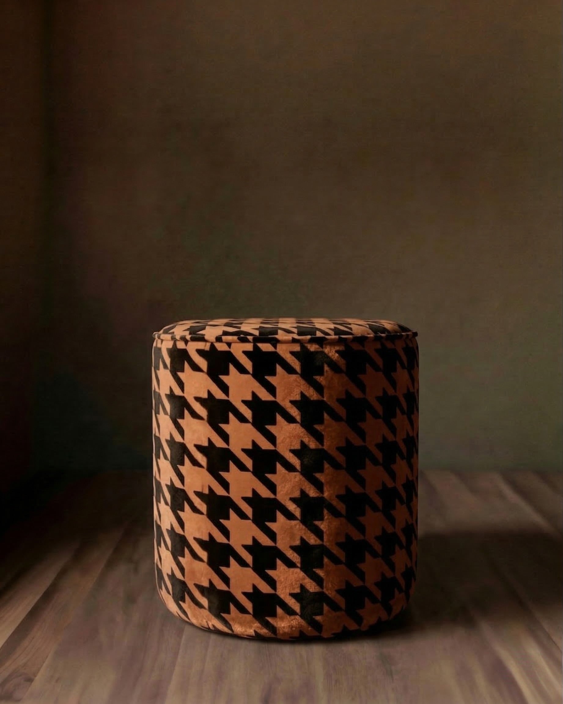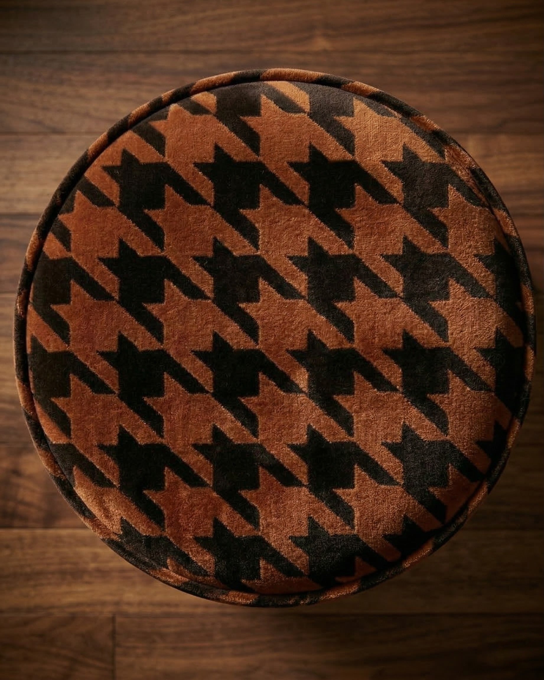 Auden Velvet Ottoman: Rich Terracotta and Black Houndstooth