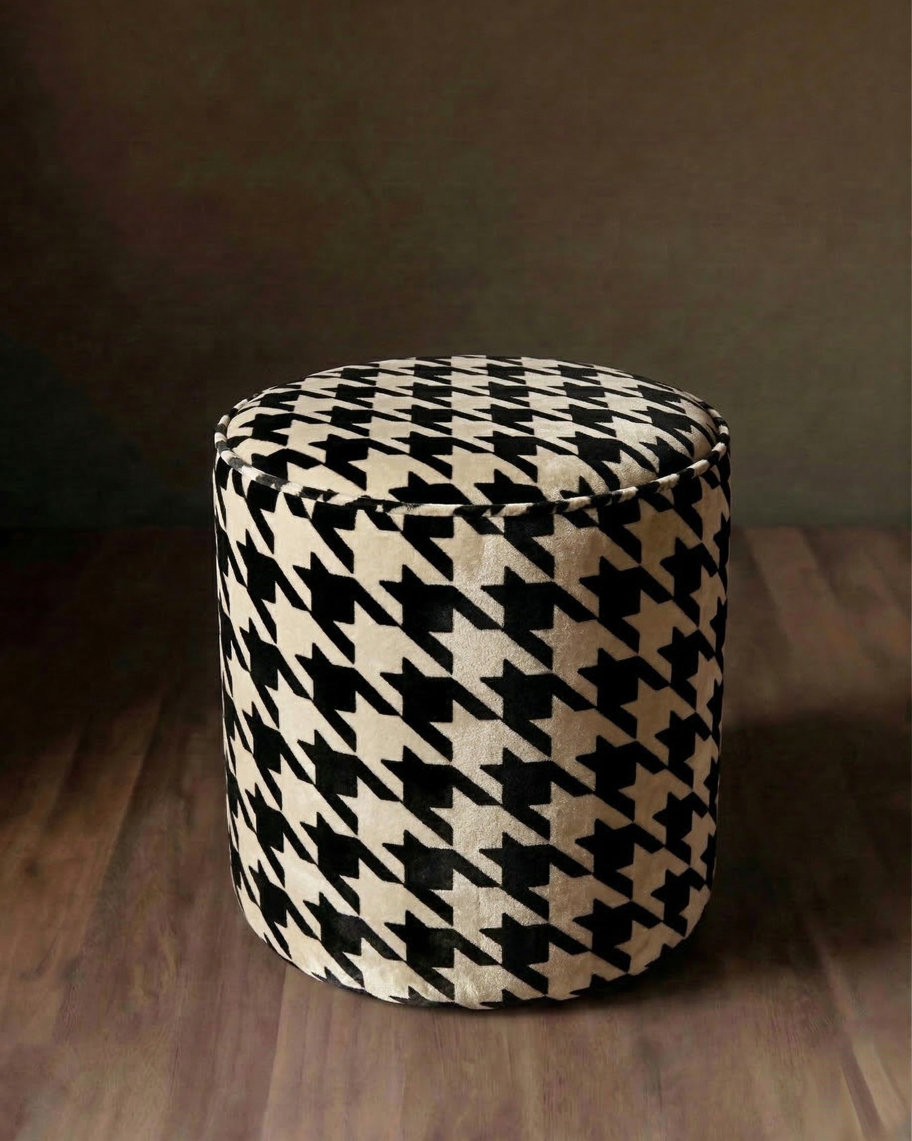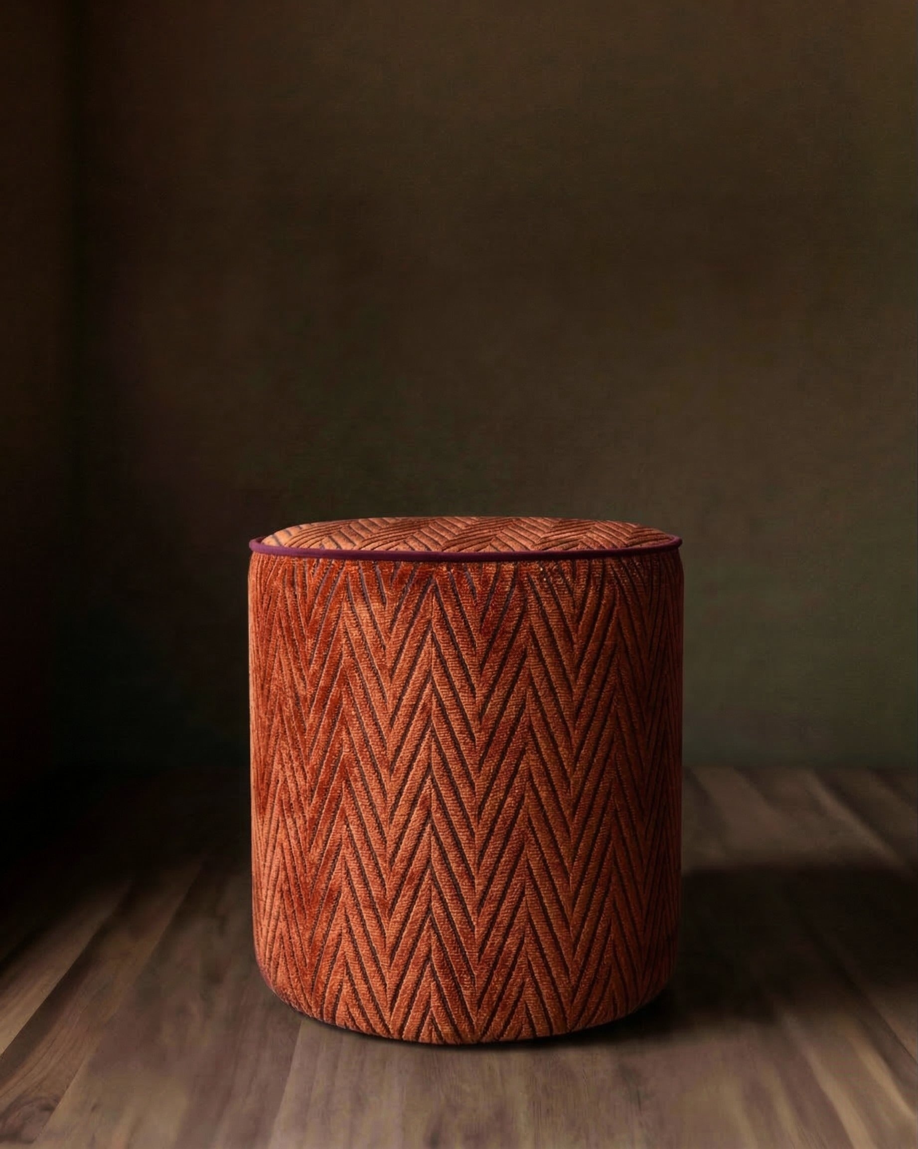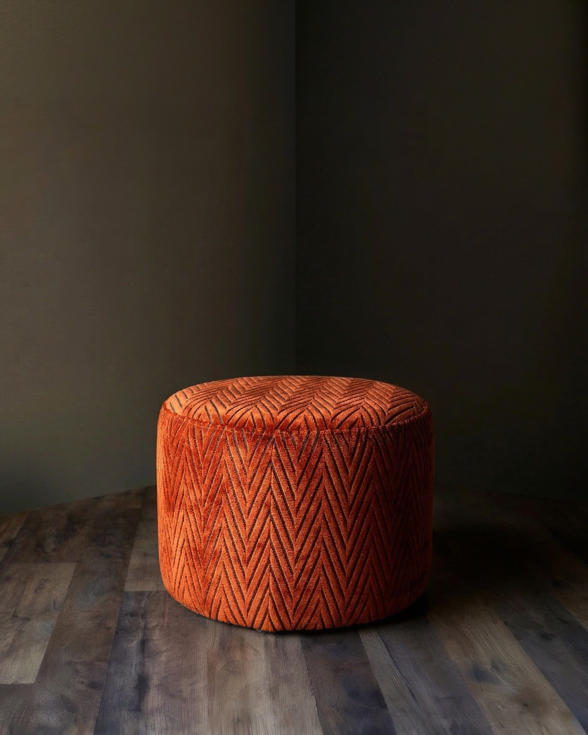Auden Velvet Ottoman: Rich Terracotta and Black Houndstooth