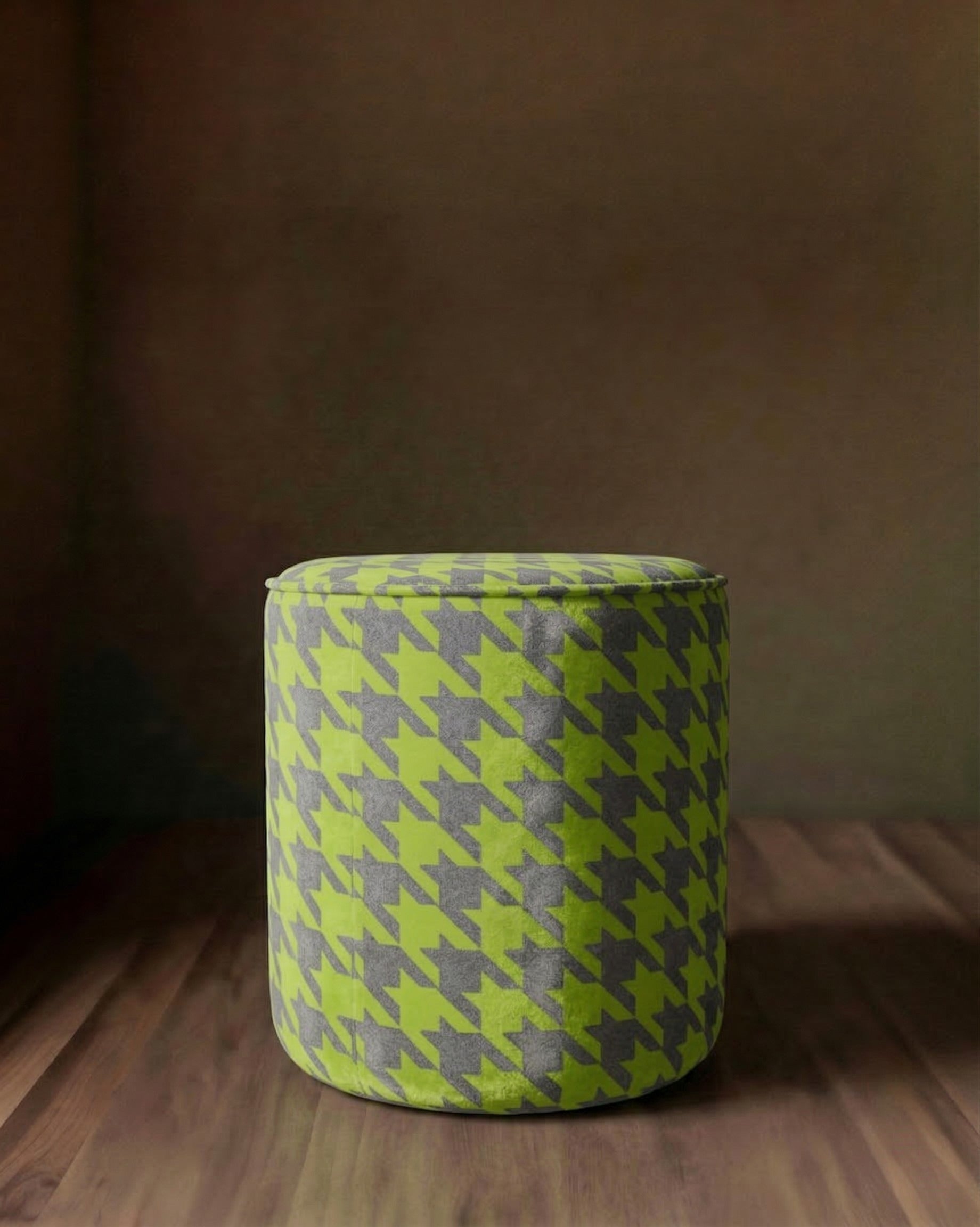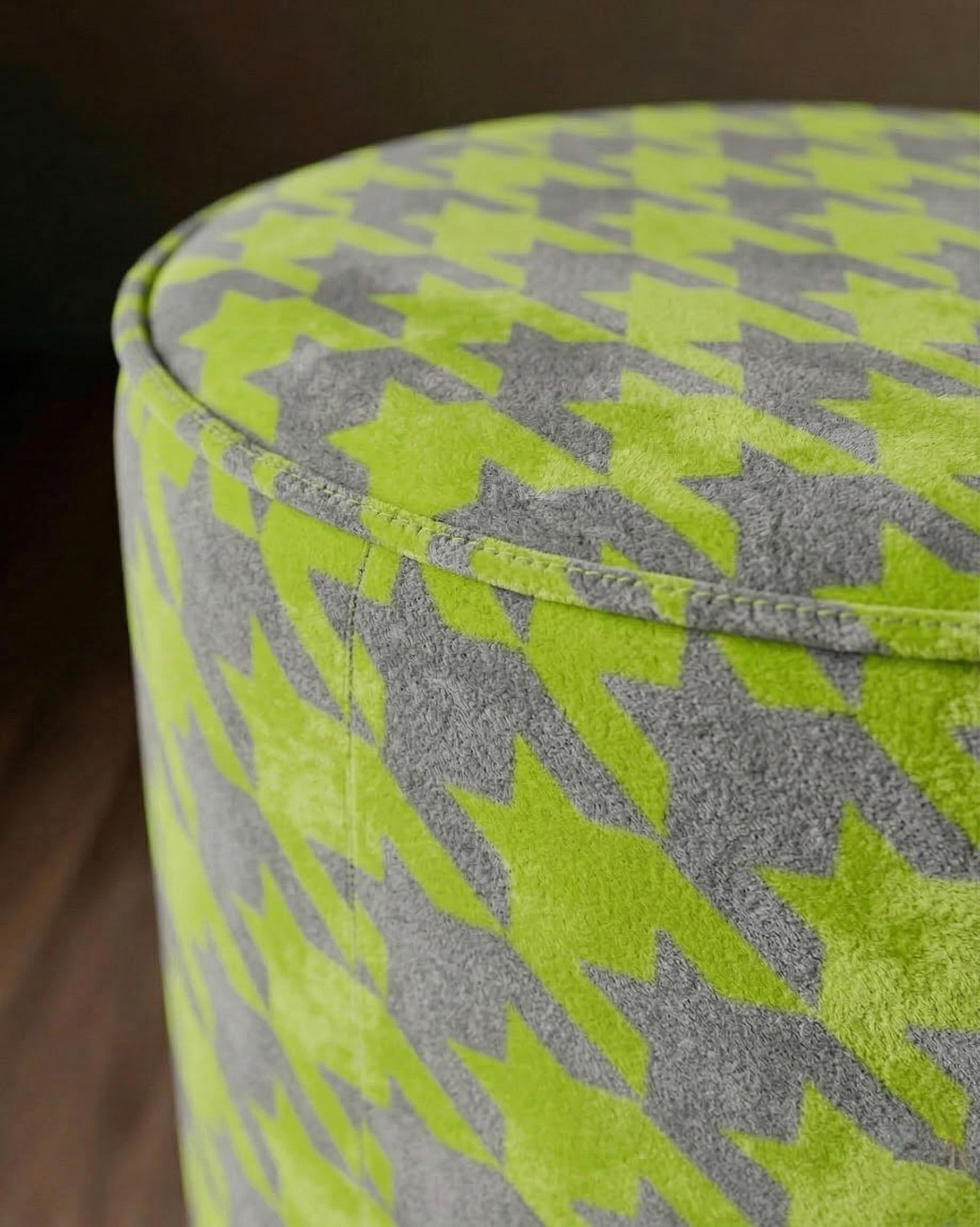 Auden Velvet Ottoman: Rich Chartreuse and Grey Houndstooth