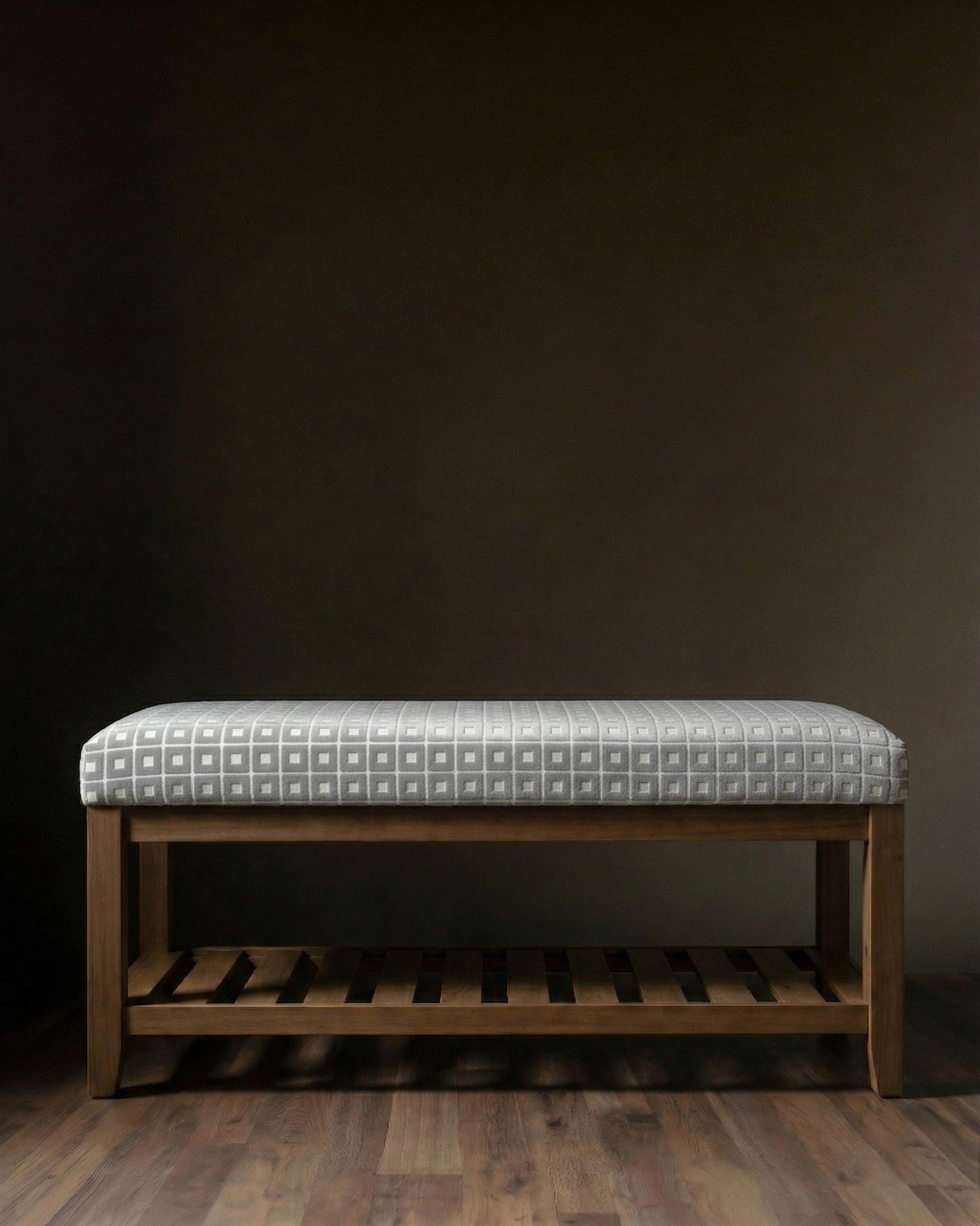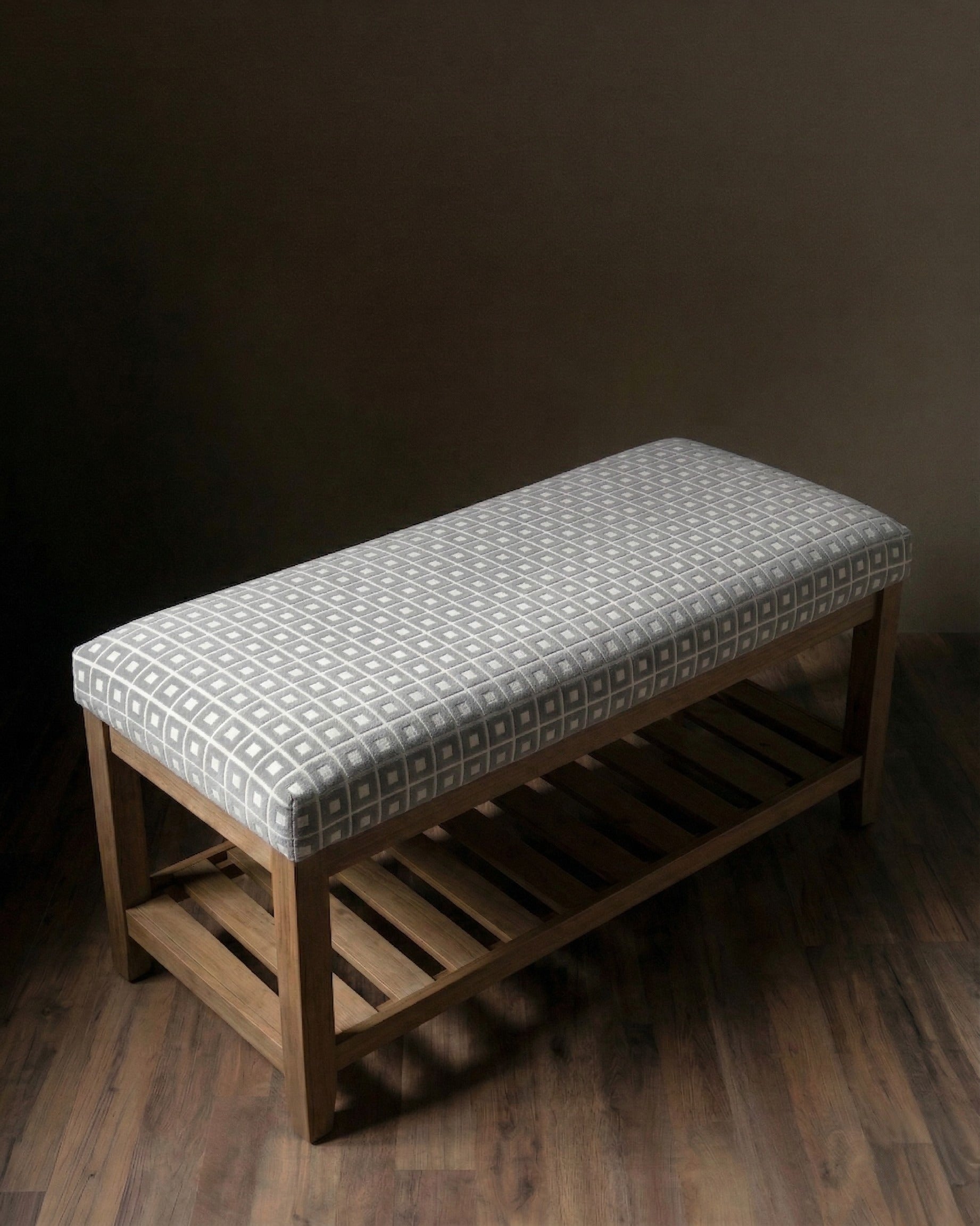 Kensington Belgian Velvet Solid Oak Bench - Warm Grey
