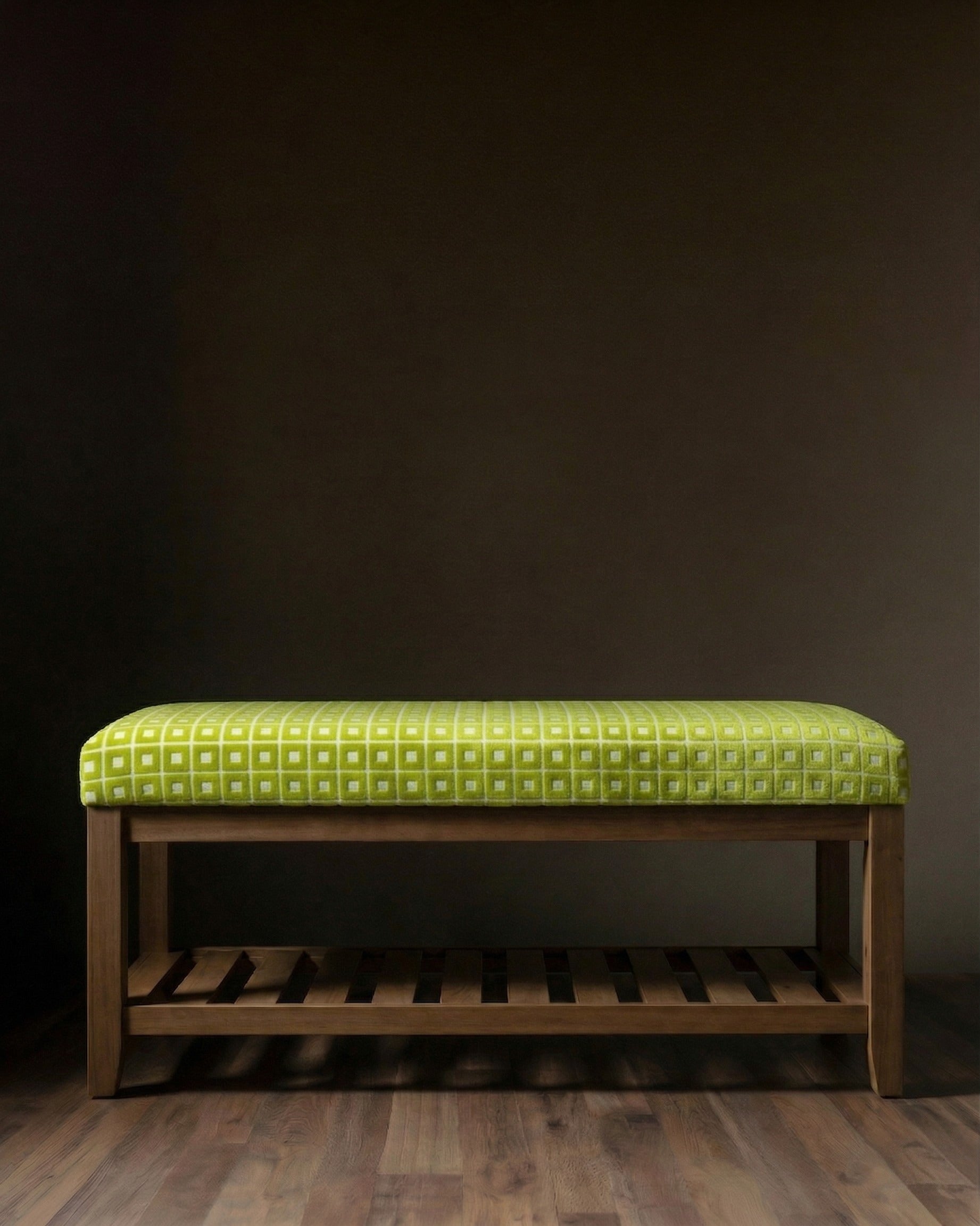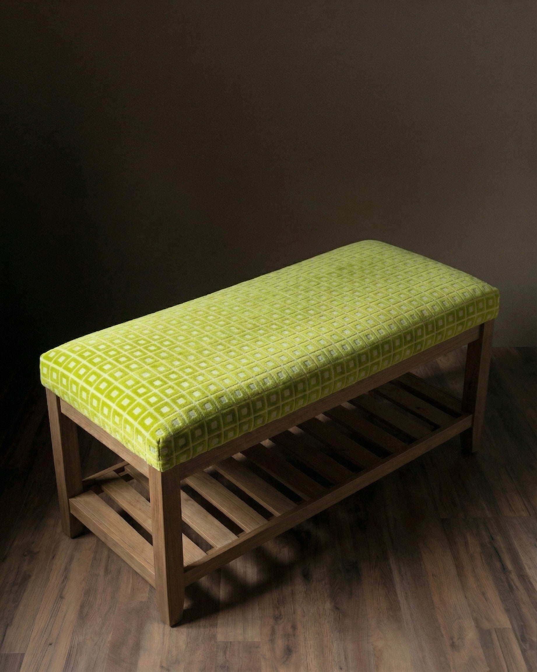 Kensington Belgian Velvet Solid Oak Bench - Lime Green