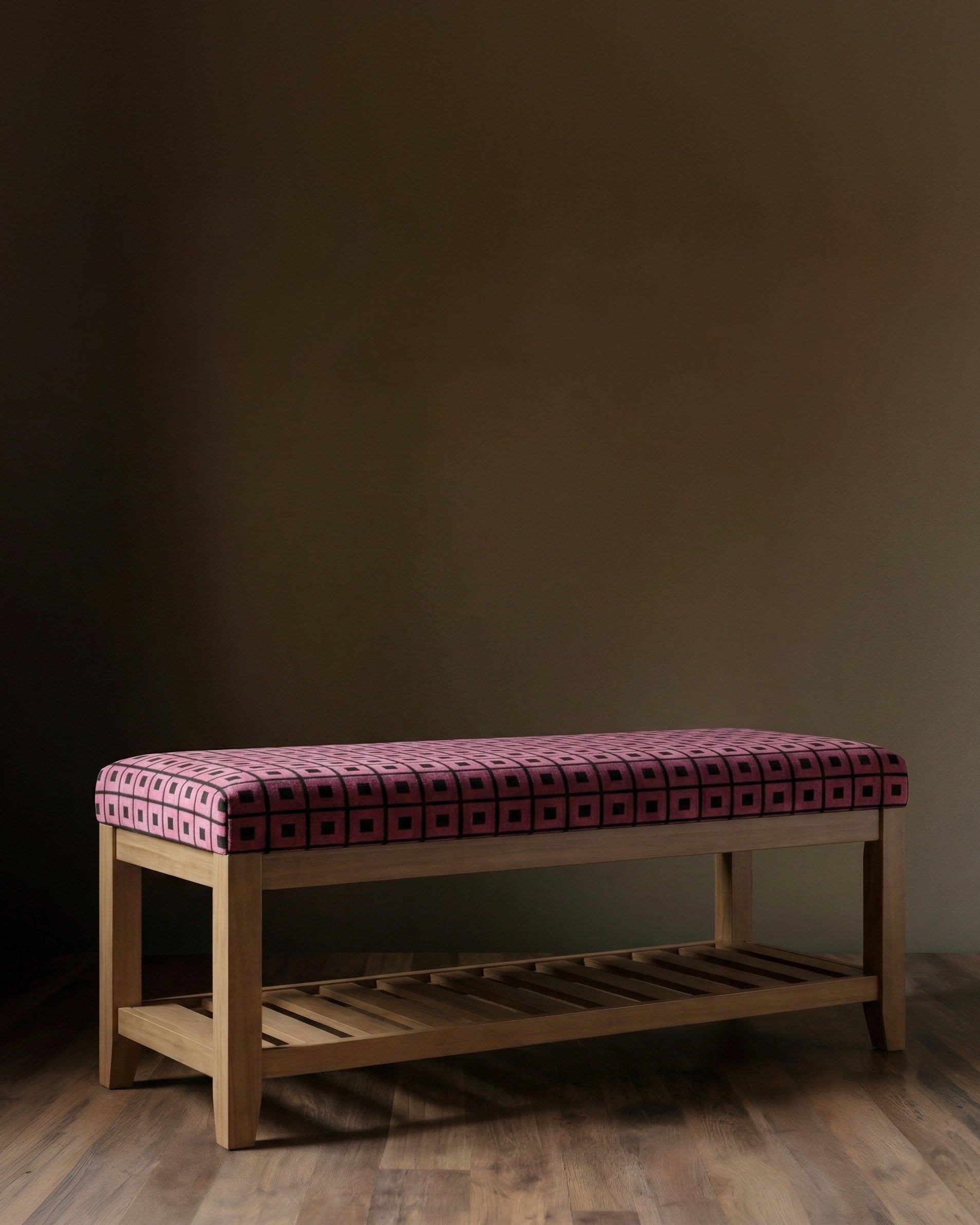 Kensington Belgian Velvet Solid Oak Bench - Salmon
