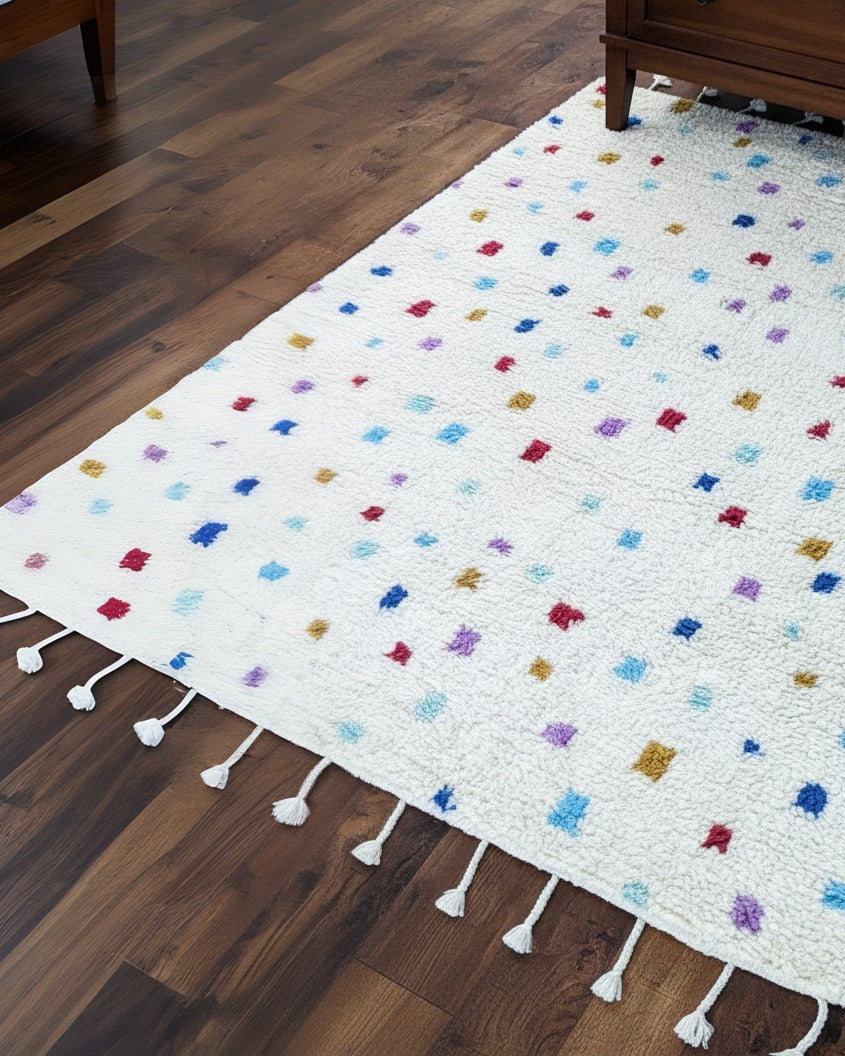 Create a cozy haven that inspires your child to explore the realms of imagination, allowing their creativity to soar. These rugs are skillfully made, featuring contemporary patterns inspired by ancient Moroccan designs, making them an ideal choice for today's modern homes, where you can build a serene sanctuary perfect for relaxation and play.