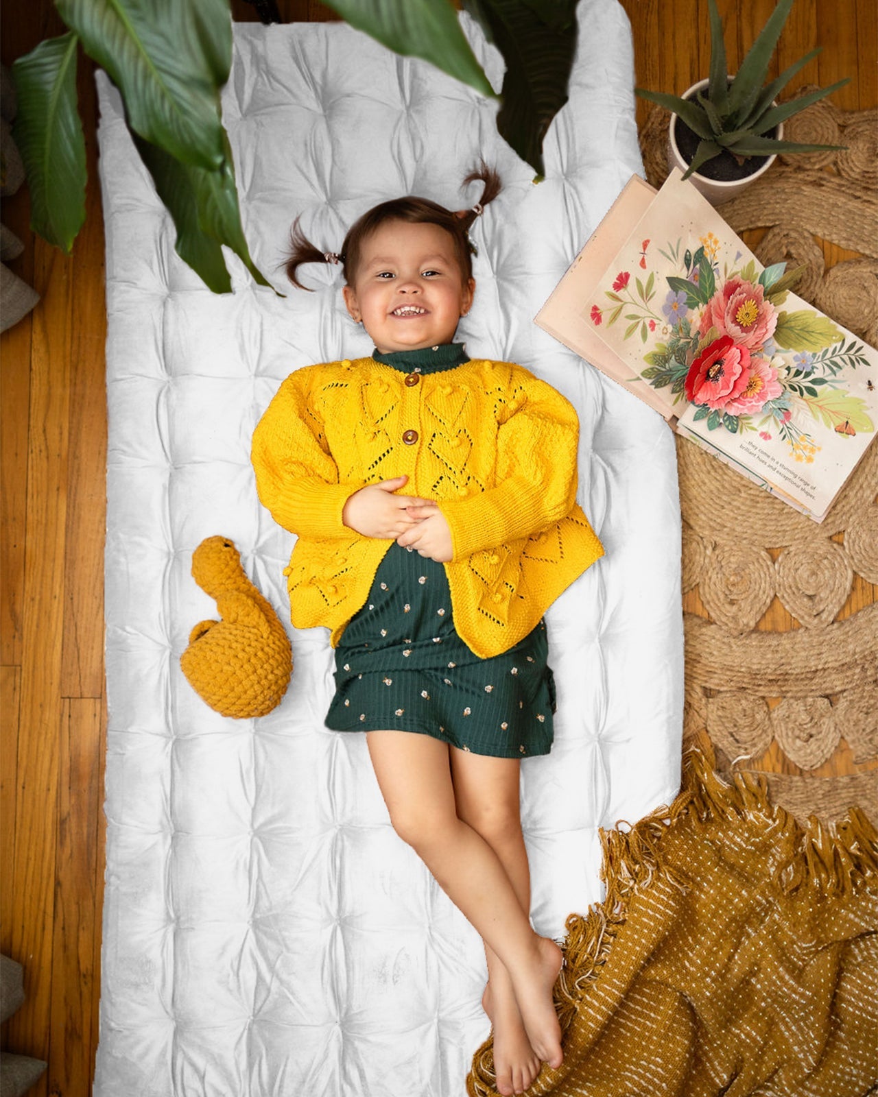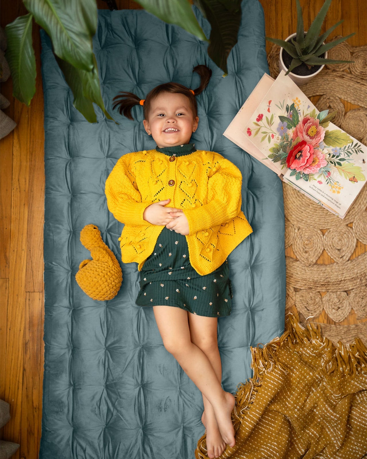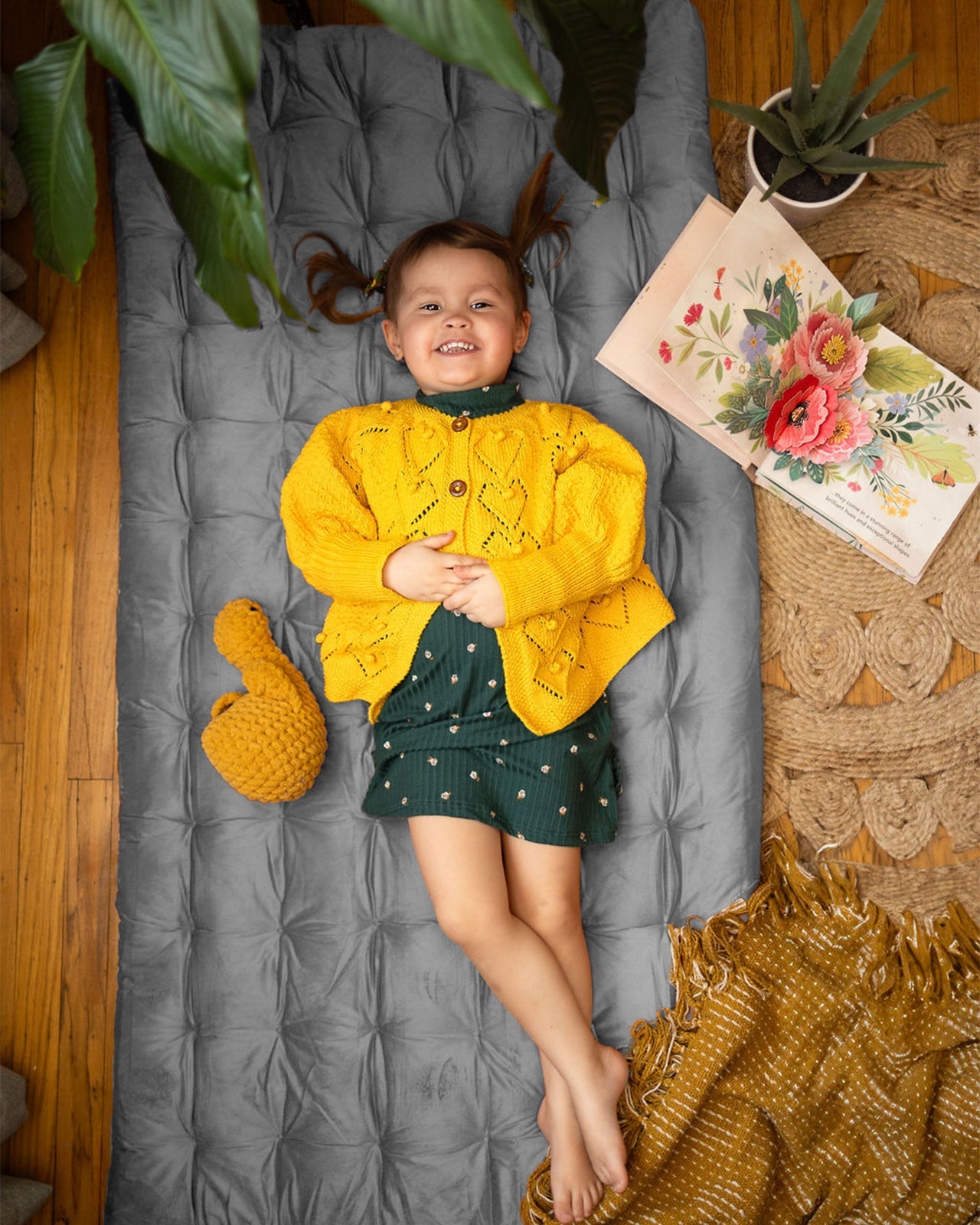 Whether it’s for a deep-dive into a favorite book, a comfortable spot for building blocks, or simply lounging on a lazy afternoon, this cushion is the ultimate foundation for quiet moments. Its sophisticated color palette ensures it looks just as beautiful in a living room as it does in a playroom. Create the reading nook of their dreams—right on the floor.