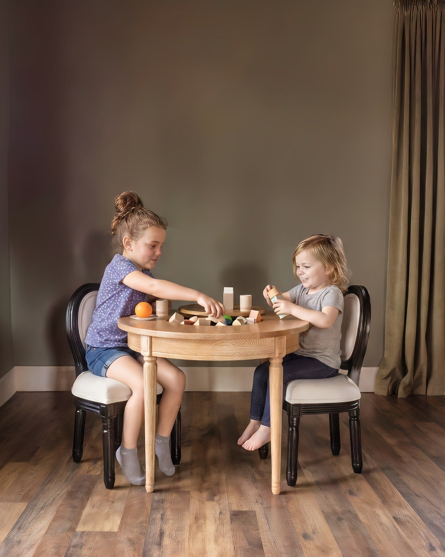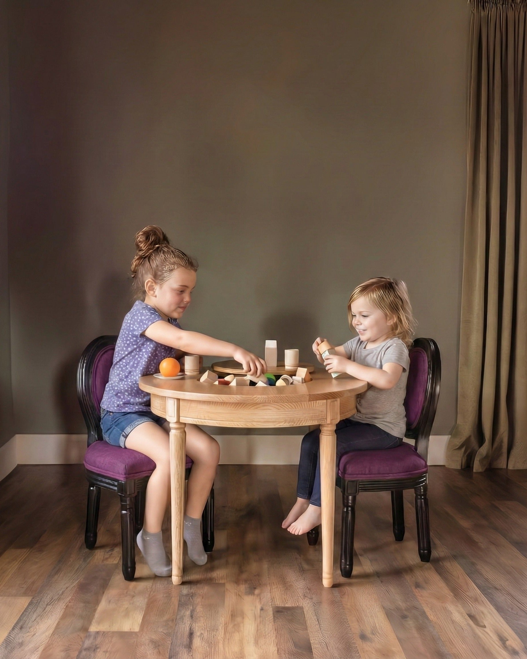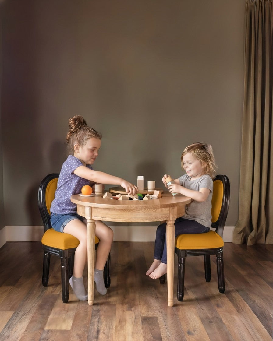 Encourage your child to embark on imaginative adventures by creating a cozy haven where their creativity can soar. Crafted with care, these hand-made solid oak wooden chairs not only offer unparalleled comfort but also add a touch of elegance to any space. Choose from a delightful array of colors including marigold, purple, forest green, black and natural tones to surround your child with their favorite hue, constructing a gentle retreat for both relaxation and play.