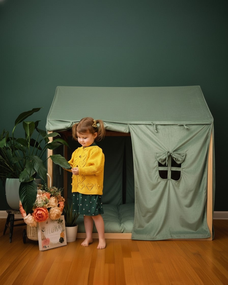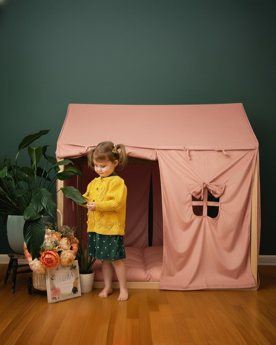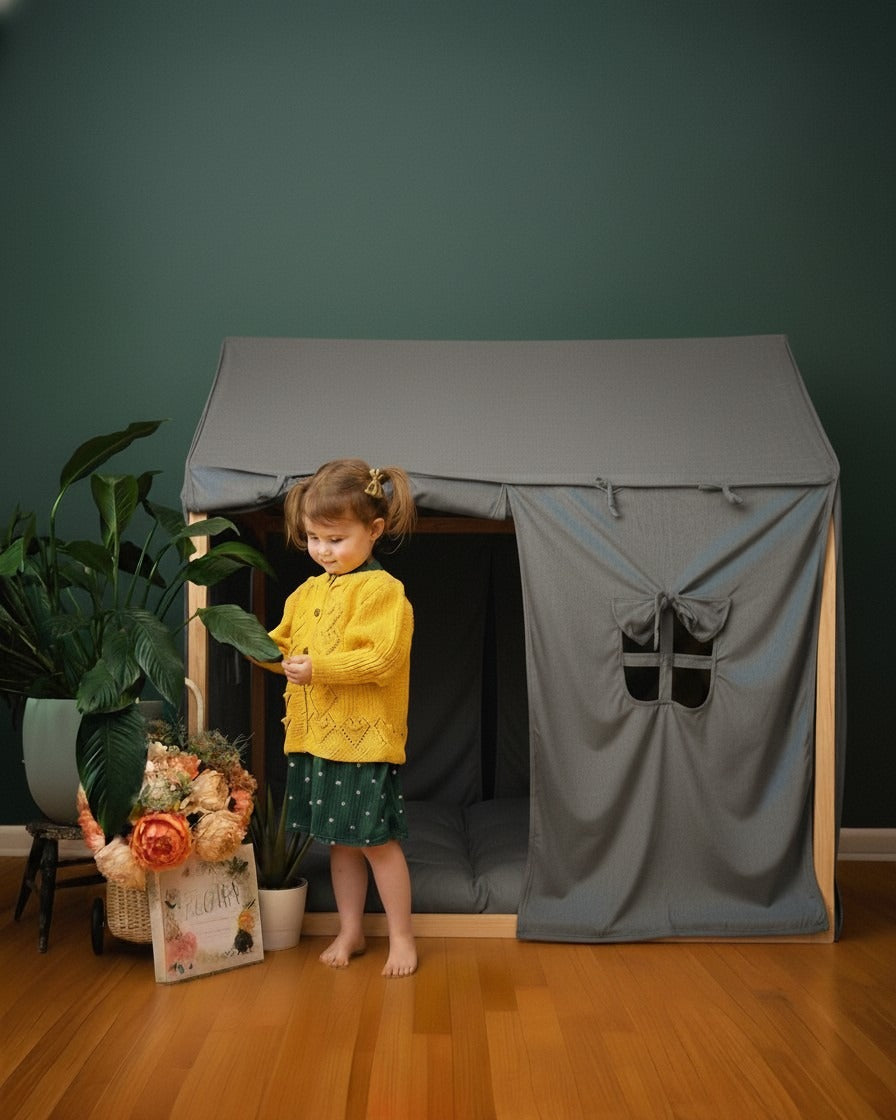 Place children in a world of imagination with this play tent! Perfect for a playroom or living room, it covers your existing Pikler Triangle and provides a space for kids to enjoy their favorite toys and stuffed animals or create their own cozy haven of blankets and pillows. Inspire little dreamers to use their imaginations and visit far-off lands, all from the comfort of home!